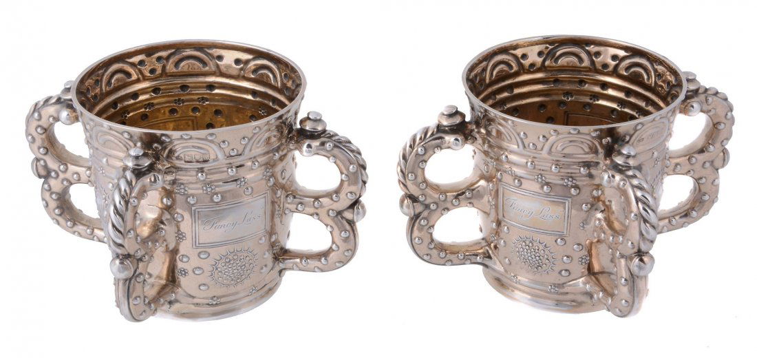 Chinese silversmith. Two small goblets richly decorated in relief with flowers and ornaments.Chairish Auctions4.5(10.4k)$120