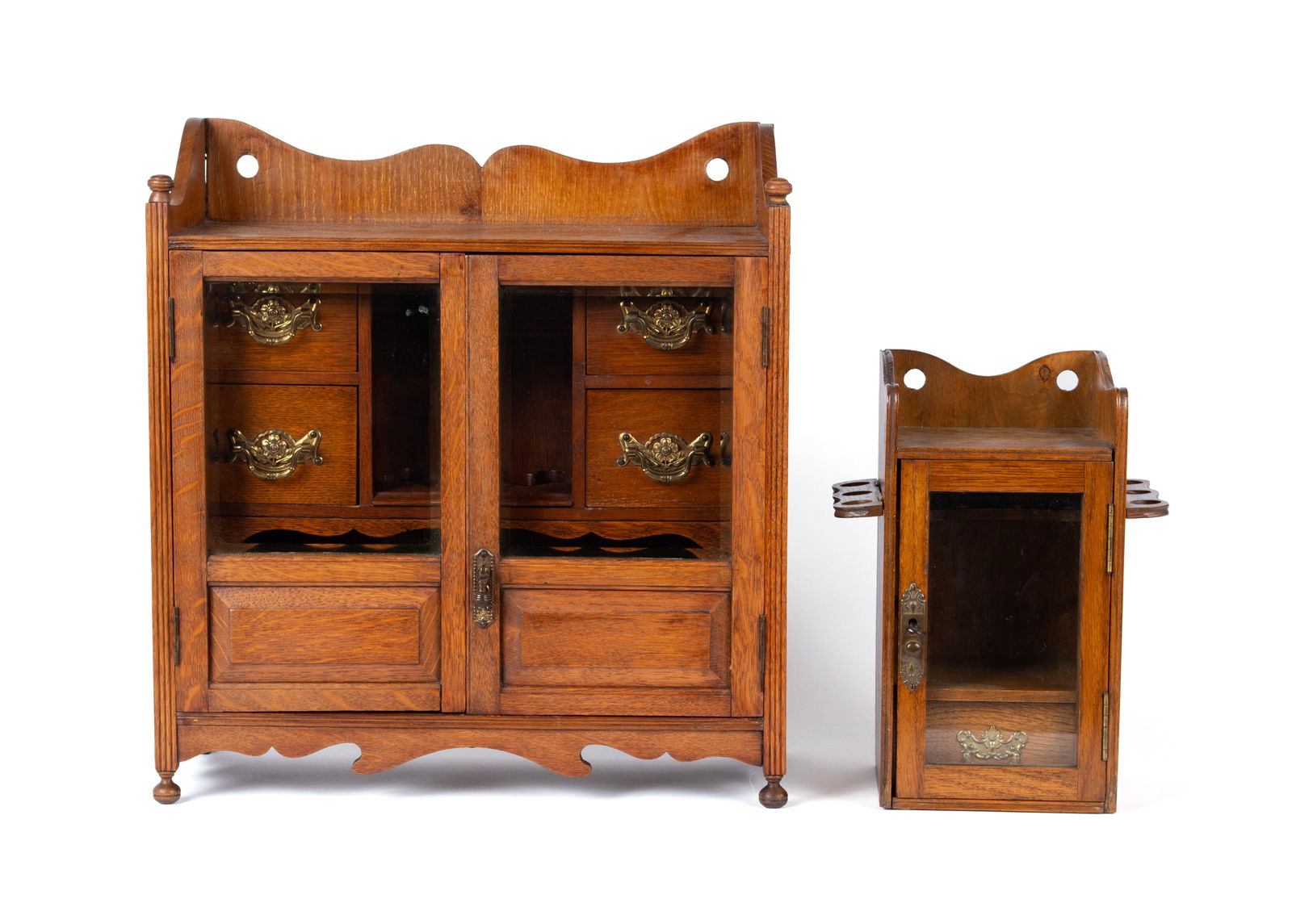 TWO EDWARDIAN TABLETOP OAK SMOKERS CABINETS