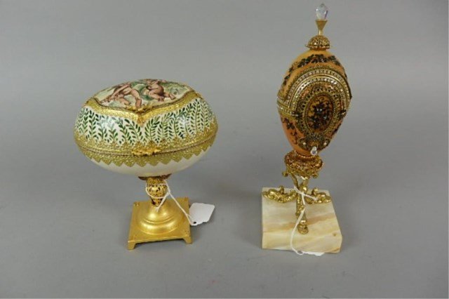 BRITISH HAND-PAINTED CERAMIC GAUDY-STYLE FLORAL TABLE ARTICLES, LOT OF TWOMar 05, 2026A lot of three variously decorated cut crystal and opaline glass objects344 Lots AwayA composed lot of two Italian Napoli porcelain vase and figural group.307 Lots AwayA lot of two antique Bohemian cut glass objects with mounted cabochon stones and brass mounting208 Lots AwayPair Deco Eggs W Rabbit Motif on Wood StandsMar 04, 2026Kitschy Ornate Vintage Decor Assortment Lot2 ANTIQUE PORCELAIN TABLE LAMPS, SEVRES STYLE ETCMar 07, 2026Anthony Redmile (1940-2016), Two ostrich egg and silver plated metal boxes, circa 1980s6 days LeftA Collection of Art Nouveau Style Jewelry and Trinket Boxes5 days LeftTwo antique French ormolu mounted glass and porcelain jewelry caskets/ trinket boxesMar 15, 2026EMPIRE STYLE MALACHITE PORCELAIN GILT BRONZE CASSOLETTESMar 07, 2026Faberge "The Swan Lake" Imperial Jeweled Egg3 days LeftLimited Edition Hand Painted Limoges Box Collection of 23 days LeftJay Strongwater Gem-Set Enamel Trinket Boxes, 2Apr 14, 2026Wave Crest Three-Compartment Dresser SetMar 07, 2026A Pair of Exquisite Gilt Bronze Inlaid Gems Dragon and Phoenix Pattern Double-Ears CenserMar 13, 2026