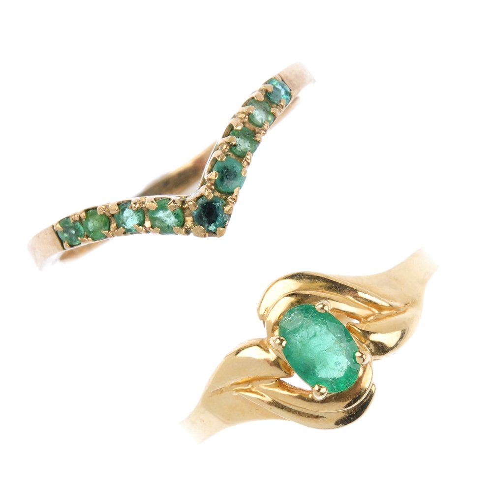 Two emerald rings. The first designed as an oval