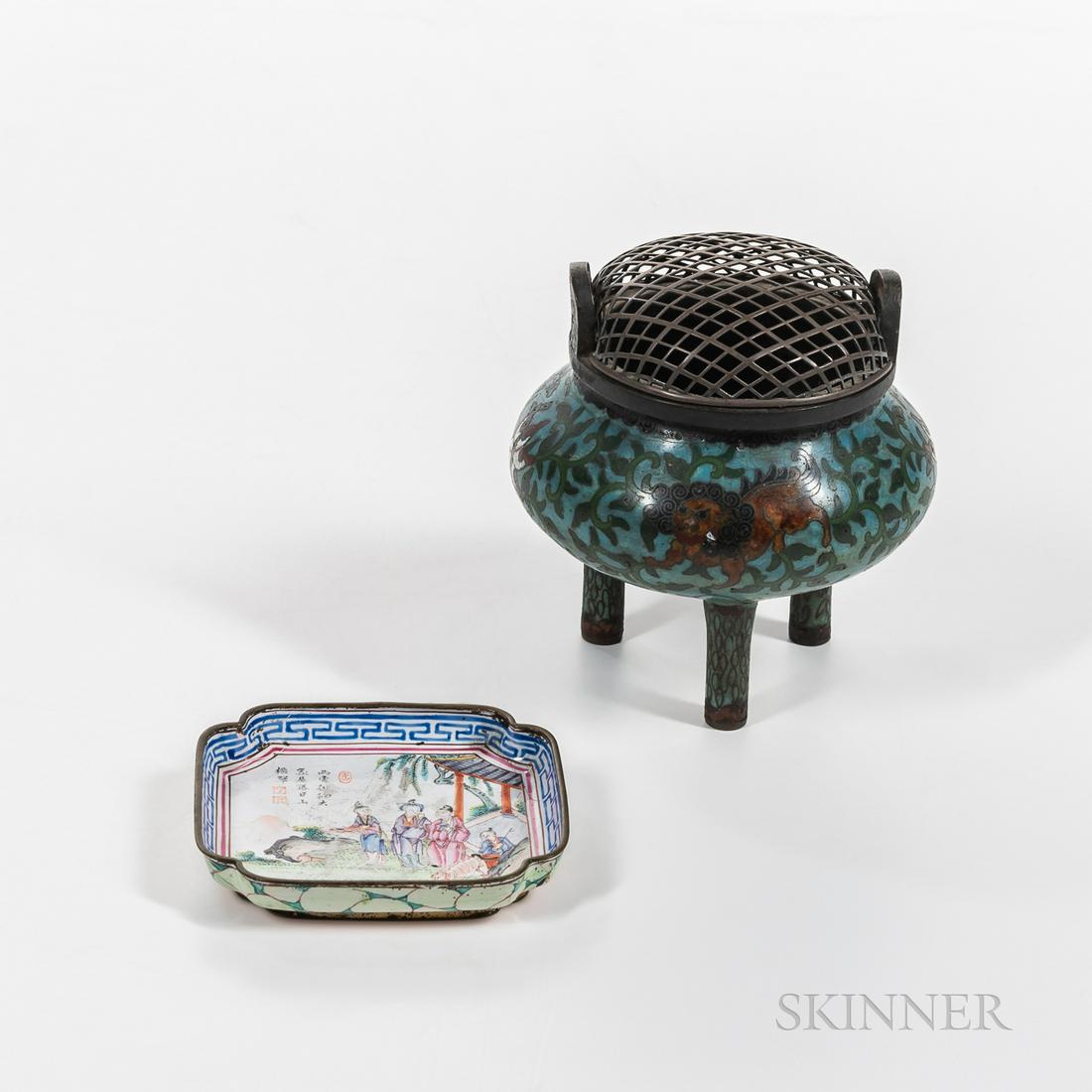 A lot of three pairs of Chinese variously shaped and decorated cloisonne vases3 days LeftA composed lot of three Italian majolic style polychrome decorated and glazed ceramic objects3 days LeftLot of 3 Chinese Cloisonne Enamel Objects, Pair of Vases and Chamber or Candlestick96 Lots AwayAntique Chinese Cloisonné Bronze Tripod Censer, c.1890Chinese Bronze & Cloisonne Cabinet Censer1 hr LeftA set of Qing Dynasty copper gilt cloisonné entwined lotus pattern furnace bottle boxMar 07, 2026A copper-gilt cloisonn é entwined lotus pattern three-legged aromatherapy burner from the QingMar 22, 2026Estate Chinese Export Porcelain Censer, Bell1 hr LeftCloisonne Enameled Lidded Boxes Teapot and Dishes (7)Mar 28, 2026Cloisonné Tea Caddy & Cinnabar Carved EggMar 05, 20263 Chinese Cloisonne VasesMar 14, 2026A Qing Dynasty copper gilt cloisonné entwined lotus pattern three-legged aroma burnerMar 07, 20263 Chinese Cloisonne VasesMar 14, 2026Collection of Vintage Cloisonné, Geishaware & Porcelain TrinketsMar 08, 2026Two Japanese Square Bronze Hibachi Censers7 days LeftSet of Two Chinese Famille Rose Dishes4 days Left