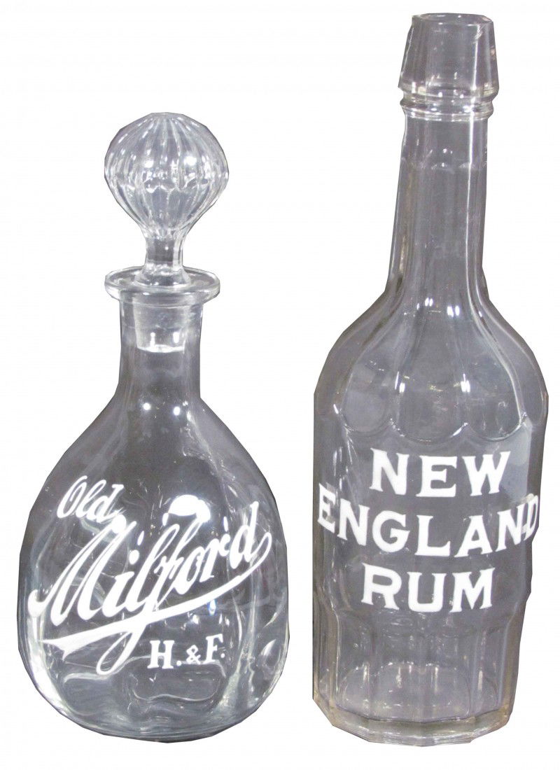 Two Enameled Label Back Bar Bottles