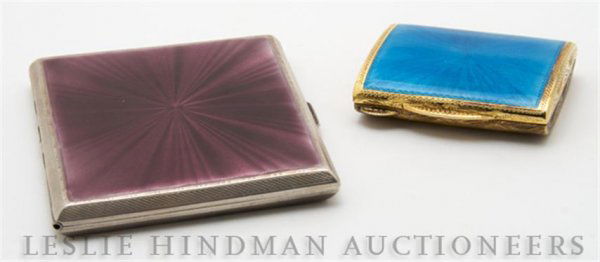 Two Enameled Silver Boxes, Width of first 3 1/2 in