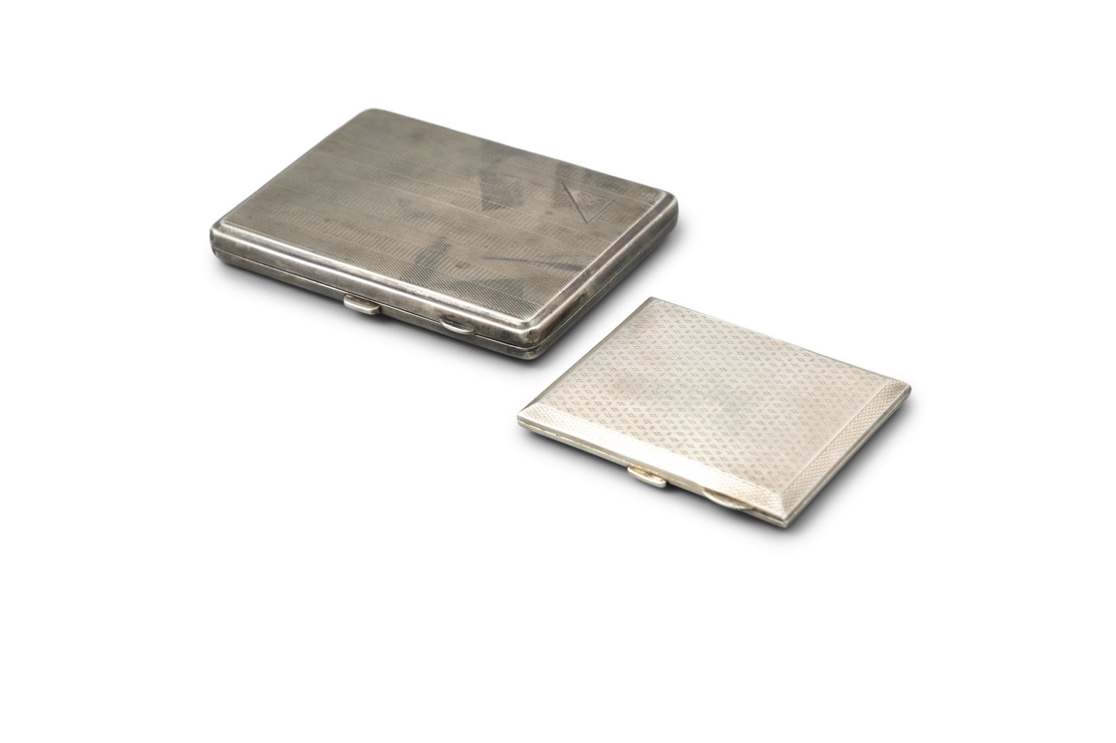 TWO ENGINE TURNED SILVER CIGARETTE BOXES, - the larger