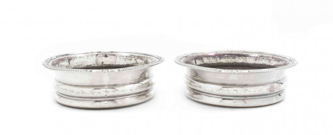 Two English Silverplate Mounted Wine Coasters, Diameter