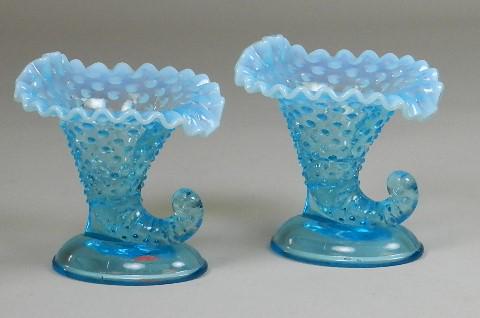 Two Fenton Hobnail Opalescent Cornucopia