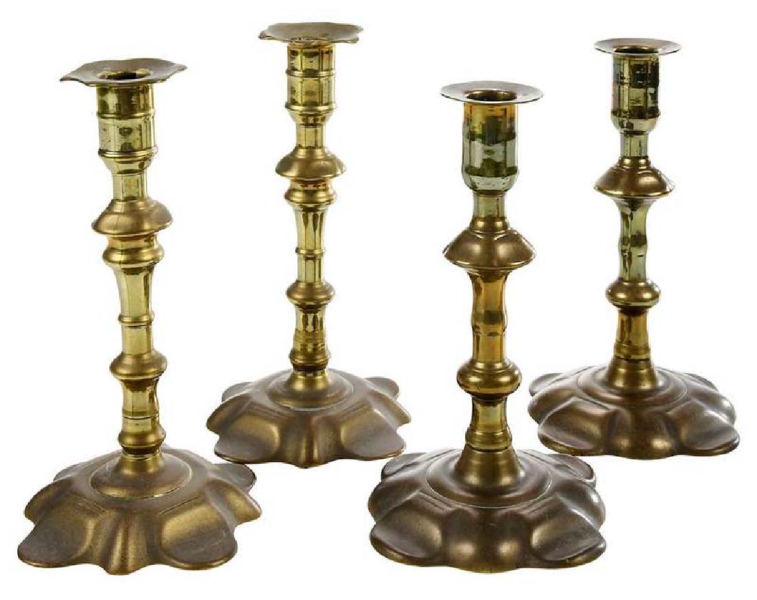 Two Fine Pairs George II Brass Candlesticks