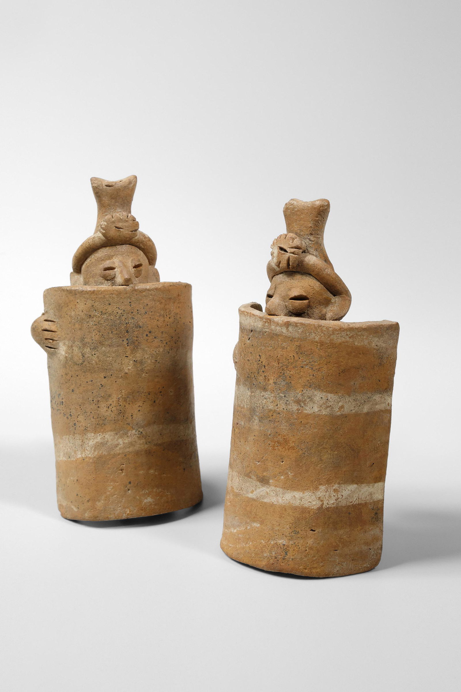 Two Flutes Shaped as Colima Warriors with Shield