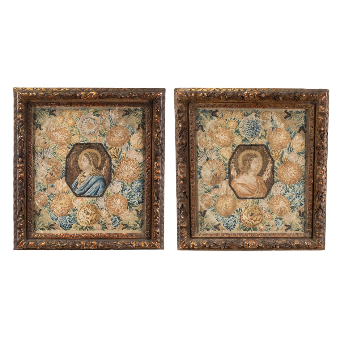 Two Framed Continental Baroque Religious Embroideries