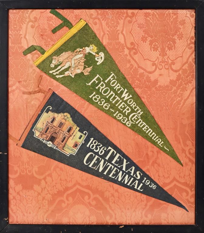 Two Framed Early 1936 Texas Centennial Banners