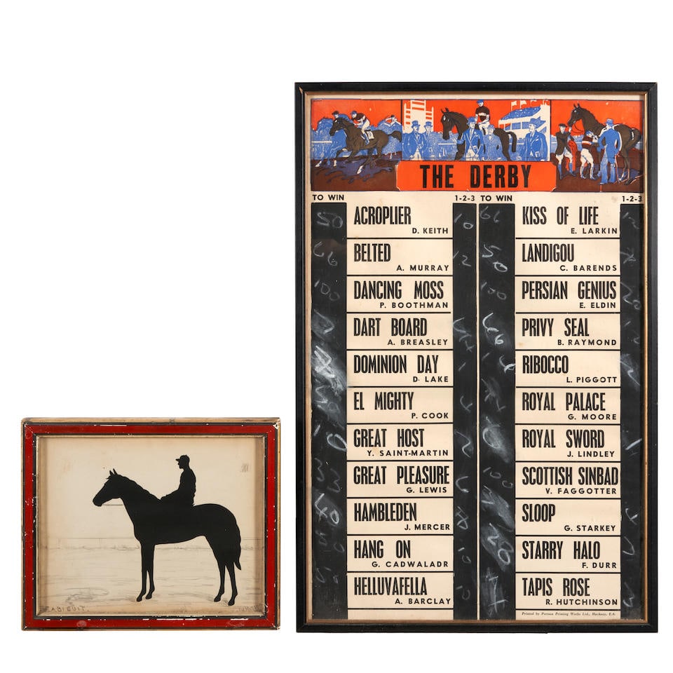 TWO FRAMED HORSE RACING ITEMS 20th century.
