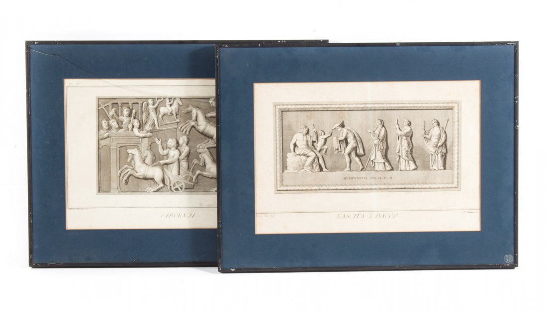 Two framed Italian classical themed engravings