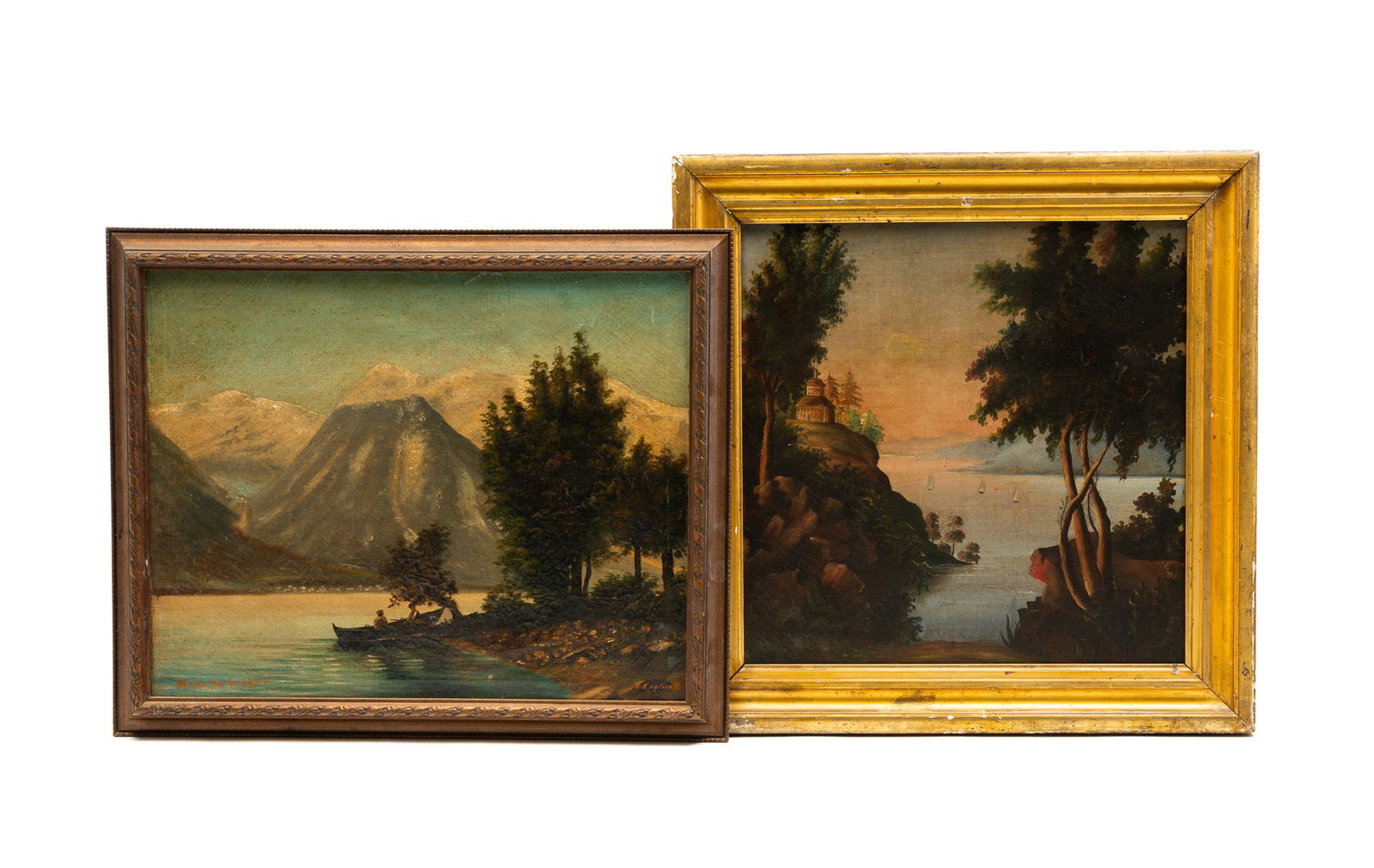 TWO FRAMED WATERSCAPES.