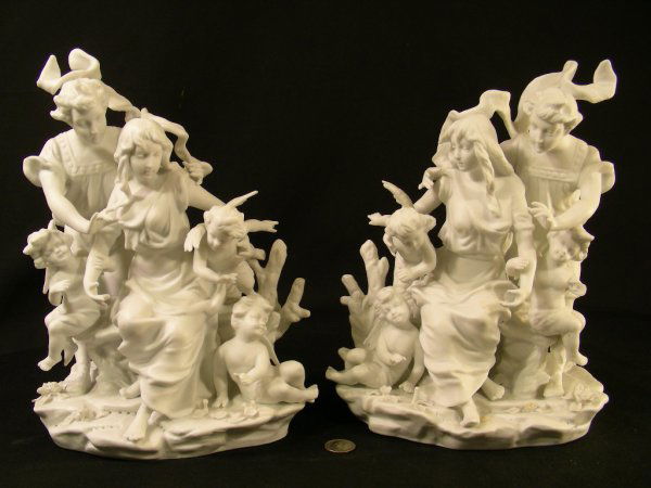 TWO FRENCH BISQUE PORCELAIN FIGURAL GROUPS