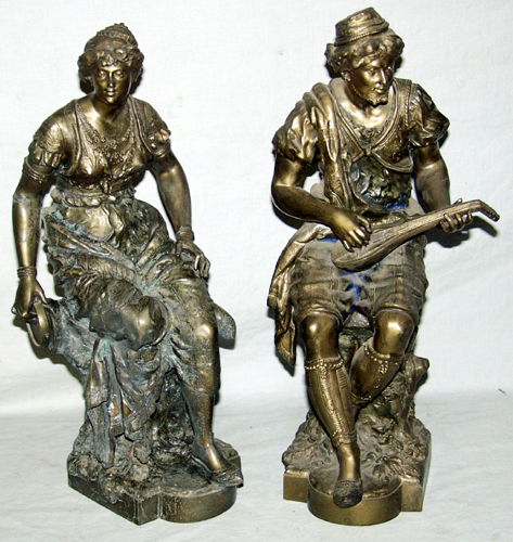 TWO FRENCH STATUES, PLAYING INSTRUMENTS