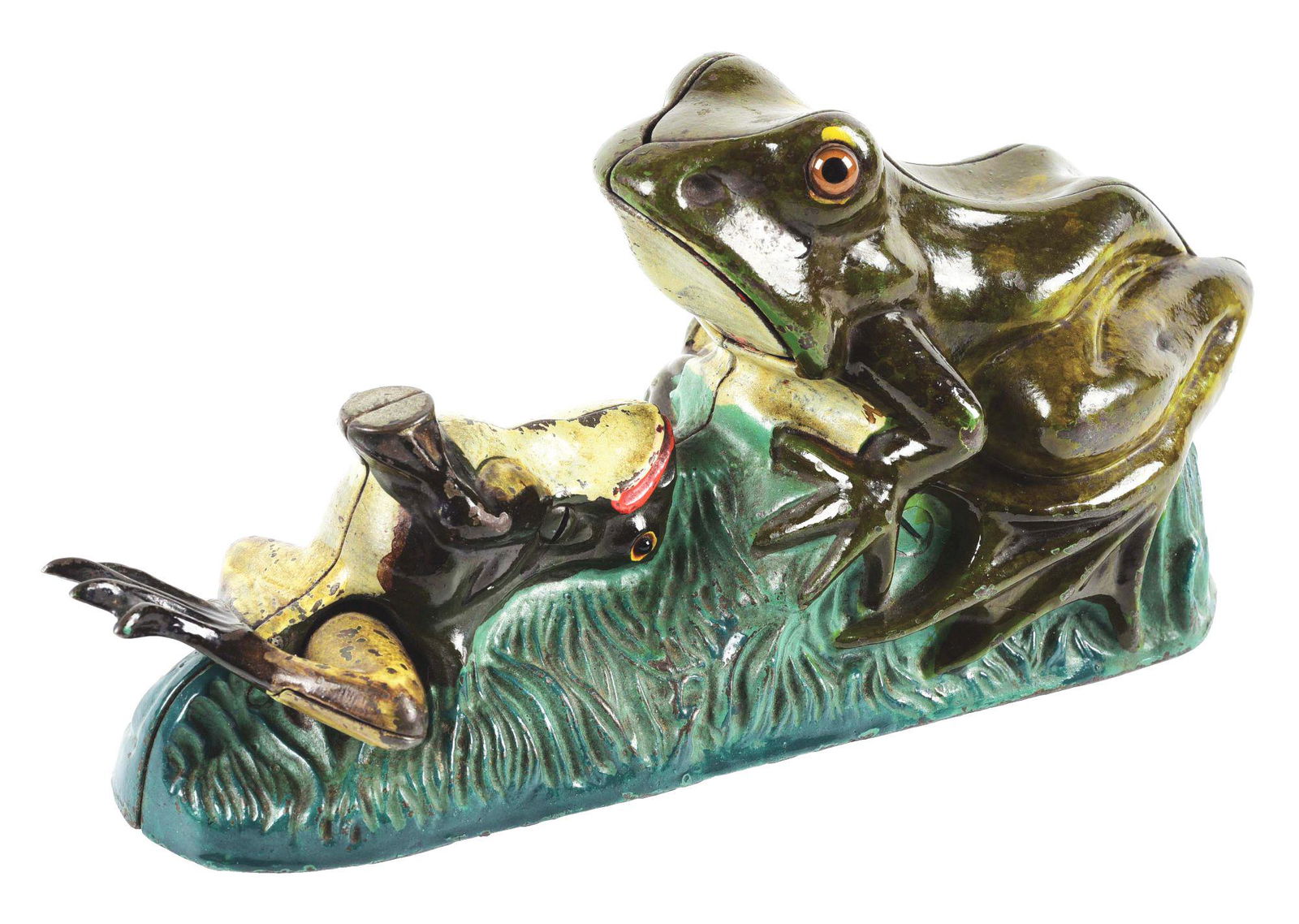 TWO FROGS CAST IRON MECHANICAL BANK.