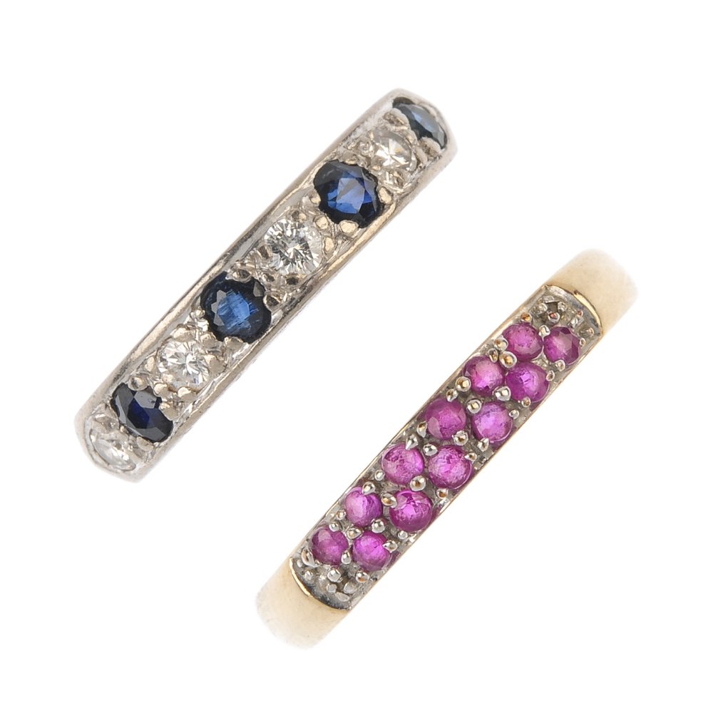 Two gem-set band rings. To include an alternating