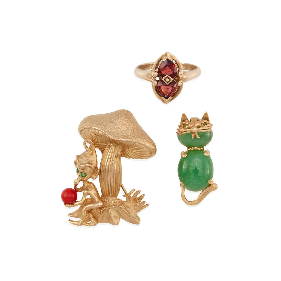 TWO GEM-SET BROOCHES AND ONE RING