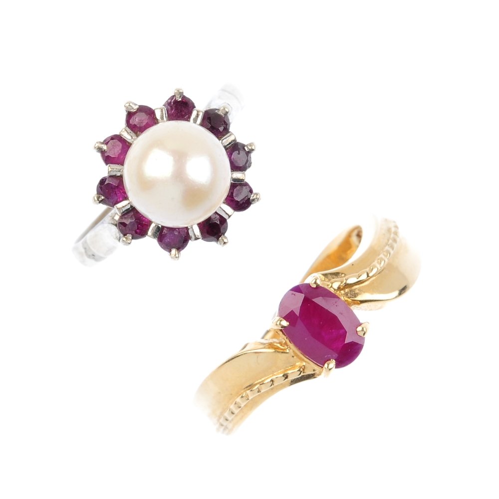 Two gem-set dress rings. To include an oval-shape ruby