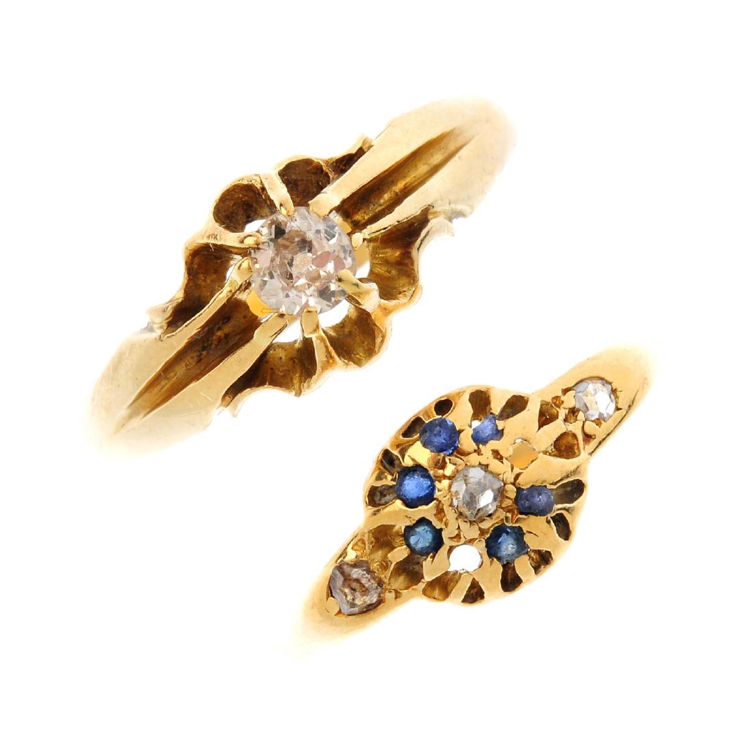 An 18ct gold sapphire and diamond three stone ring and a 9ct gold sapphire and diamond cluster ring,Sworders Fine Art Auctioneers4.4(38)£606 days Left