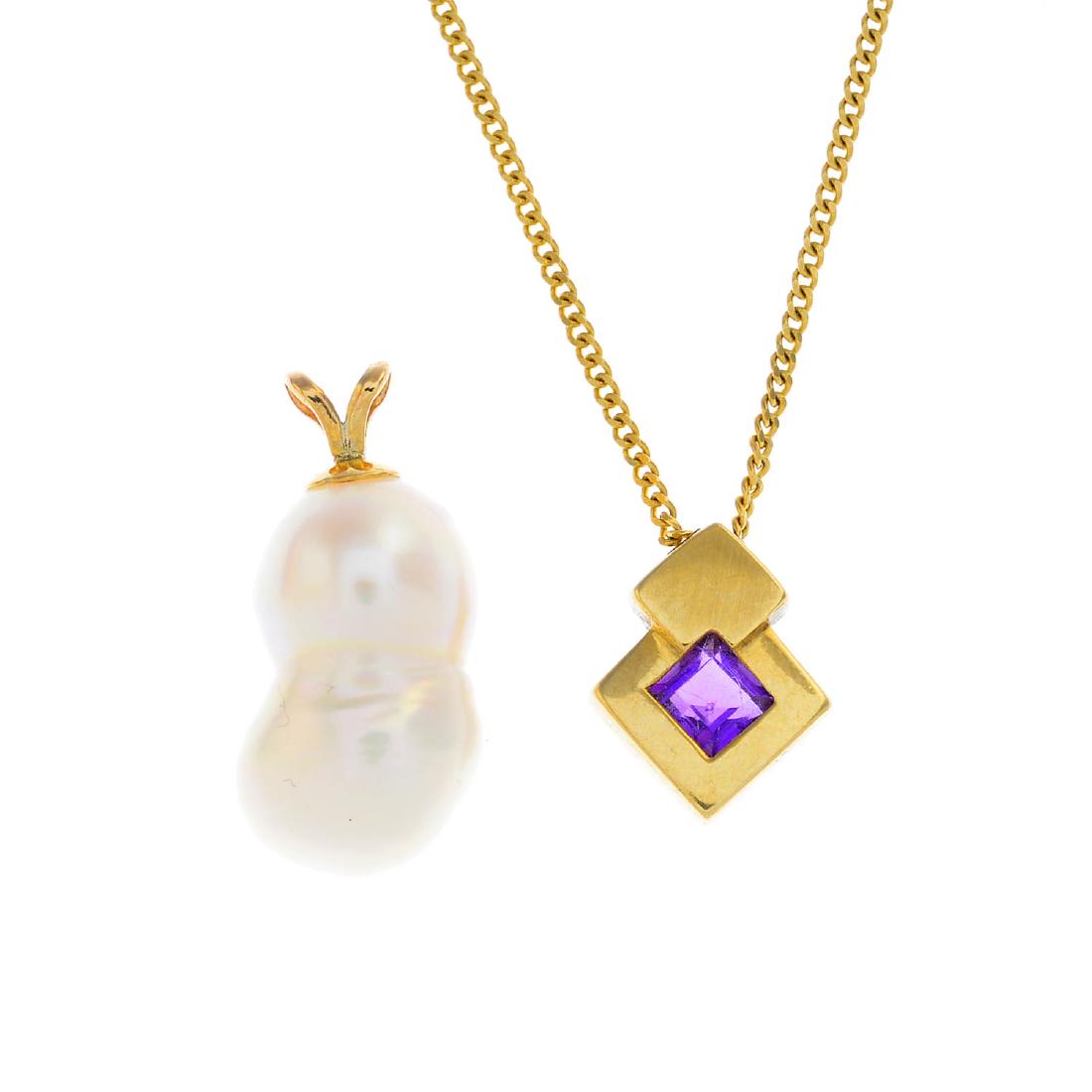 A 9ct gold cultured pearl pendant on chain and a 9ct gold cubic zirconia pendant,Sworders Fine Art Auctioneers4.4(38)£5016 hrs Left