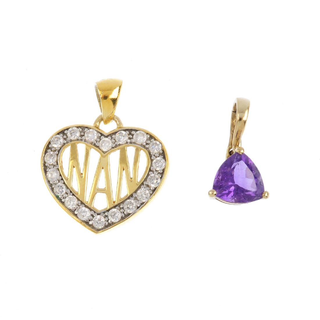 Two gem-set pendants. To include a triangular-shape