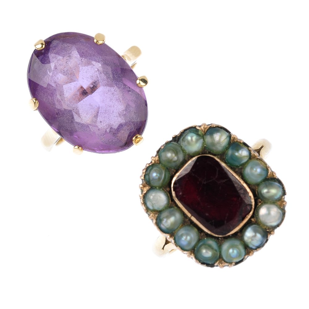 Two gem-set rings. A 9ct gold amethyst single-stone