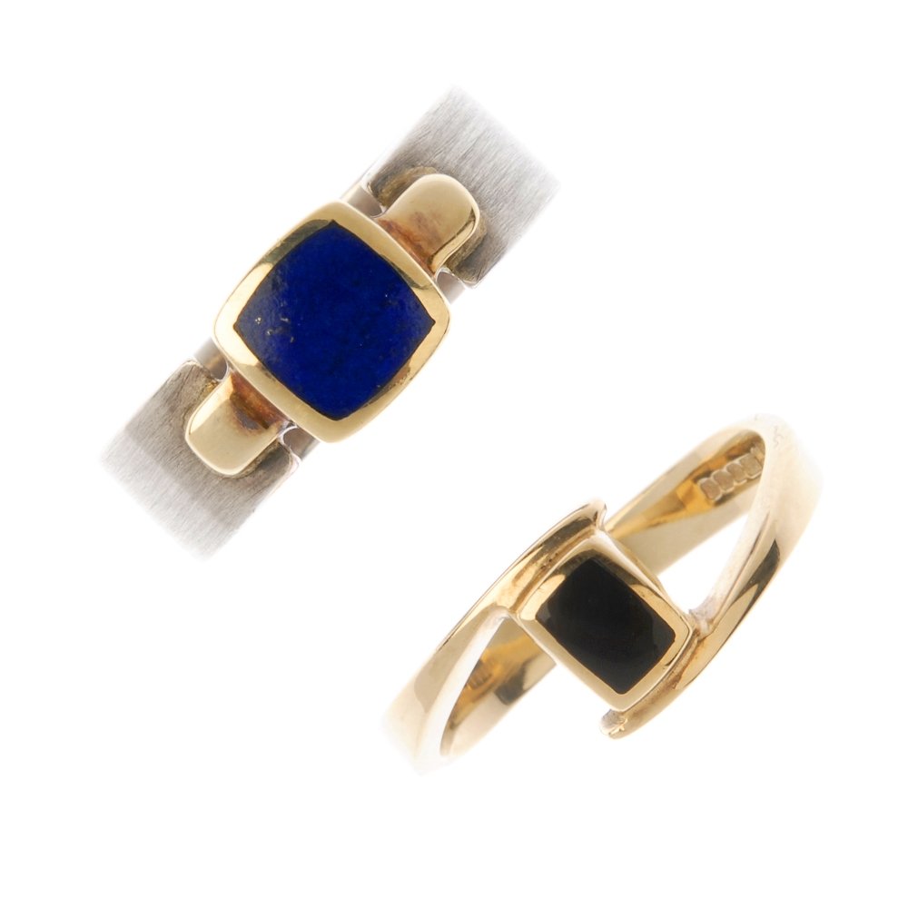 Two gem-set rings. To include a 9ct gold onyx