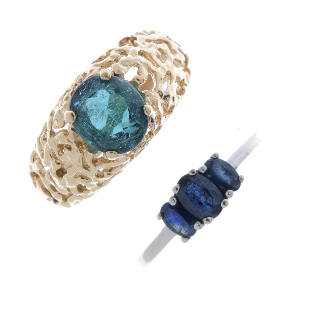 Two gem-set rings. To include a sapphire three-stone