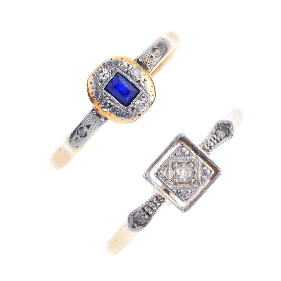 An 18ct gold sapphire and diamond three stone ring and a 9ct gold sapphire and diamond cluster ring,Sworders Fine Art Auctioneers4.4(38)£604 days Left