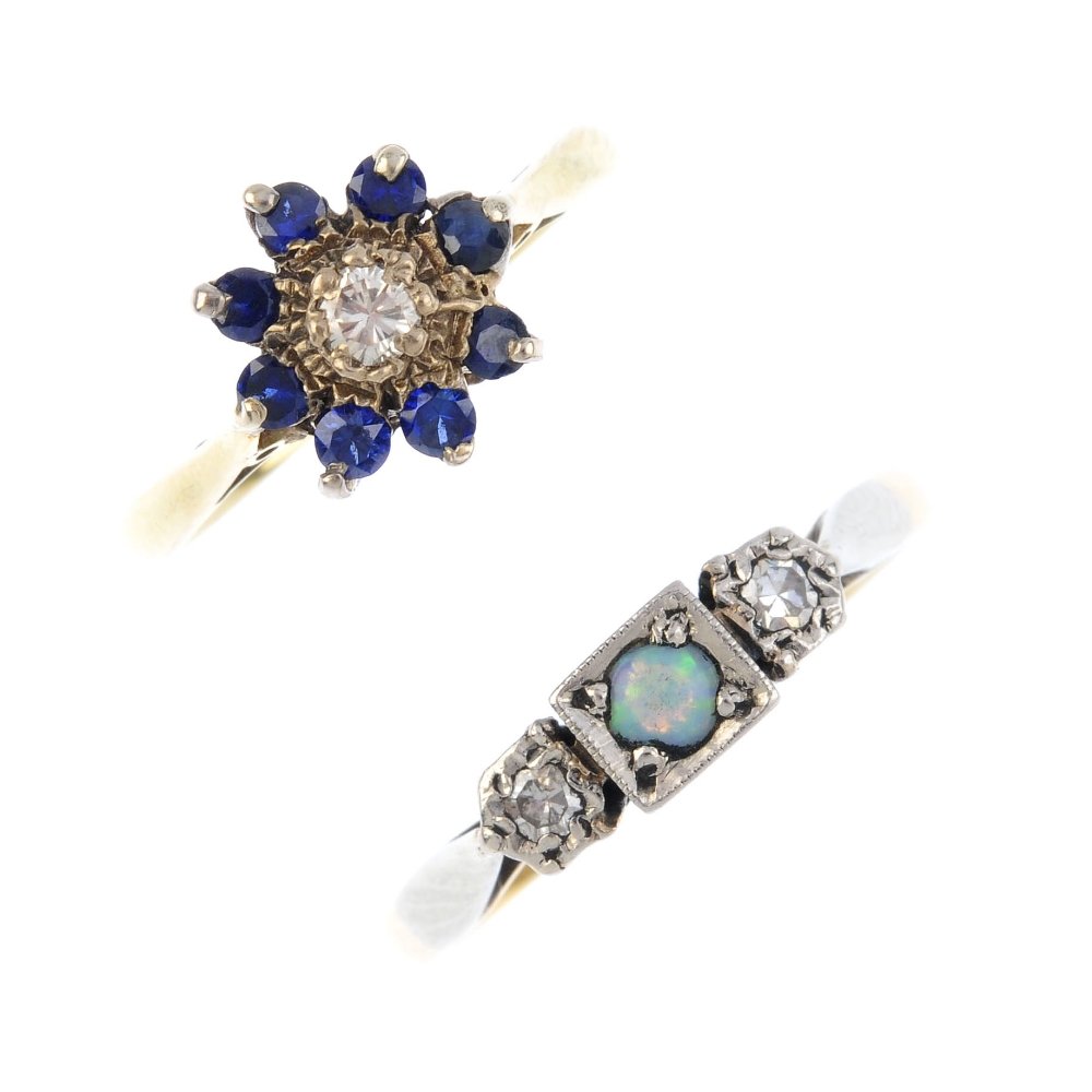 Two gem-set rings. To include an opal and diamond