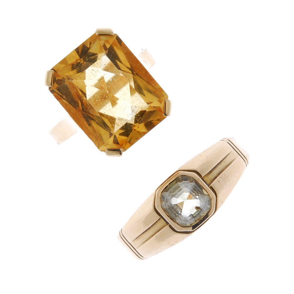 Two gem-set single-stone dress rings.