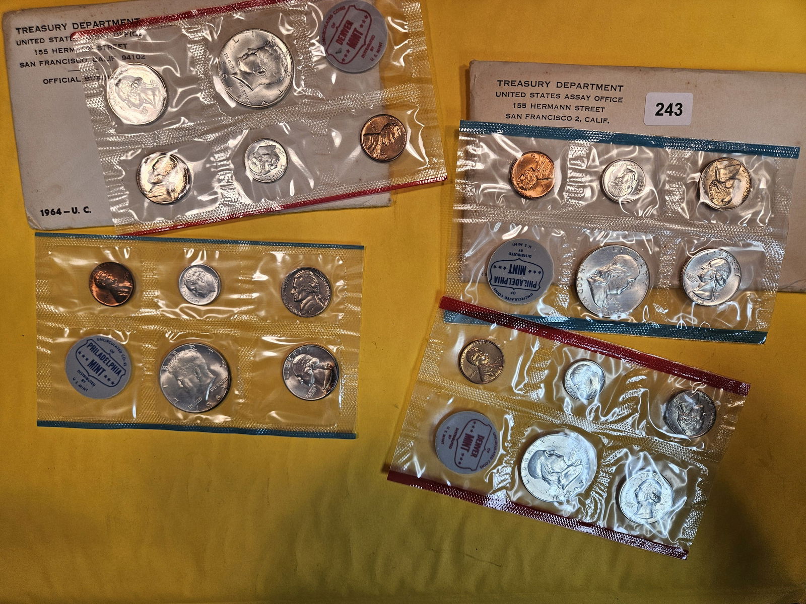Sold1964 P/D 10 Coin 90% silver US Mint Set. GEM BU. First two Kennedy Halves.1964 P/D 10 Coin 90% silver US Mint Set. GEM BU. First two Kennedy Halves.See Sold Price