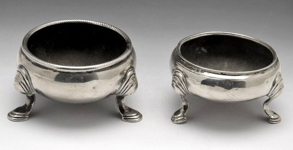 Two George II silver open salts.