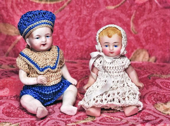 TWO GERMAN ALL-BISQUE BABIES. 3 ¾" & 4 ¼". Each