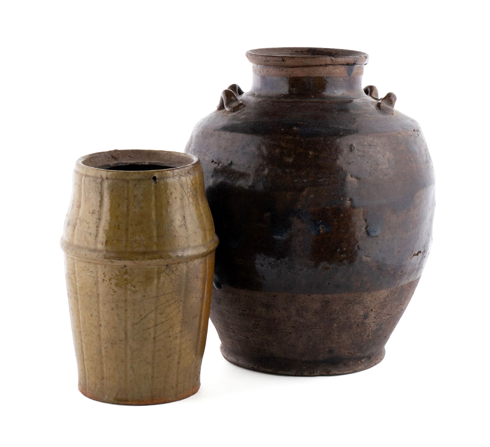 TWO GLAZED EARTHENWARE JARS