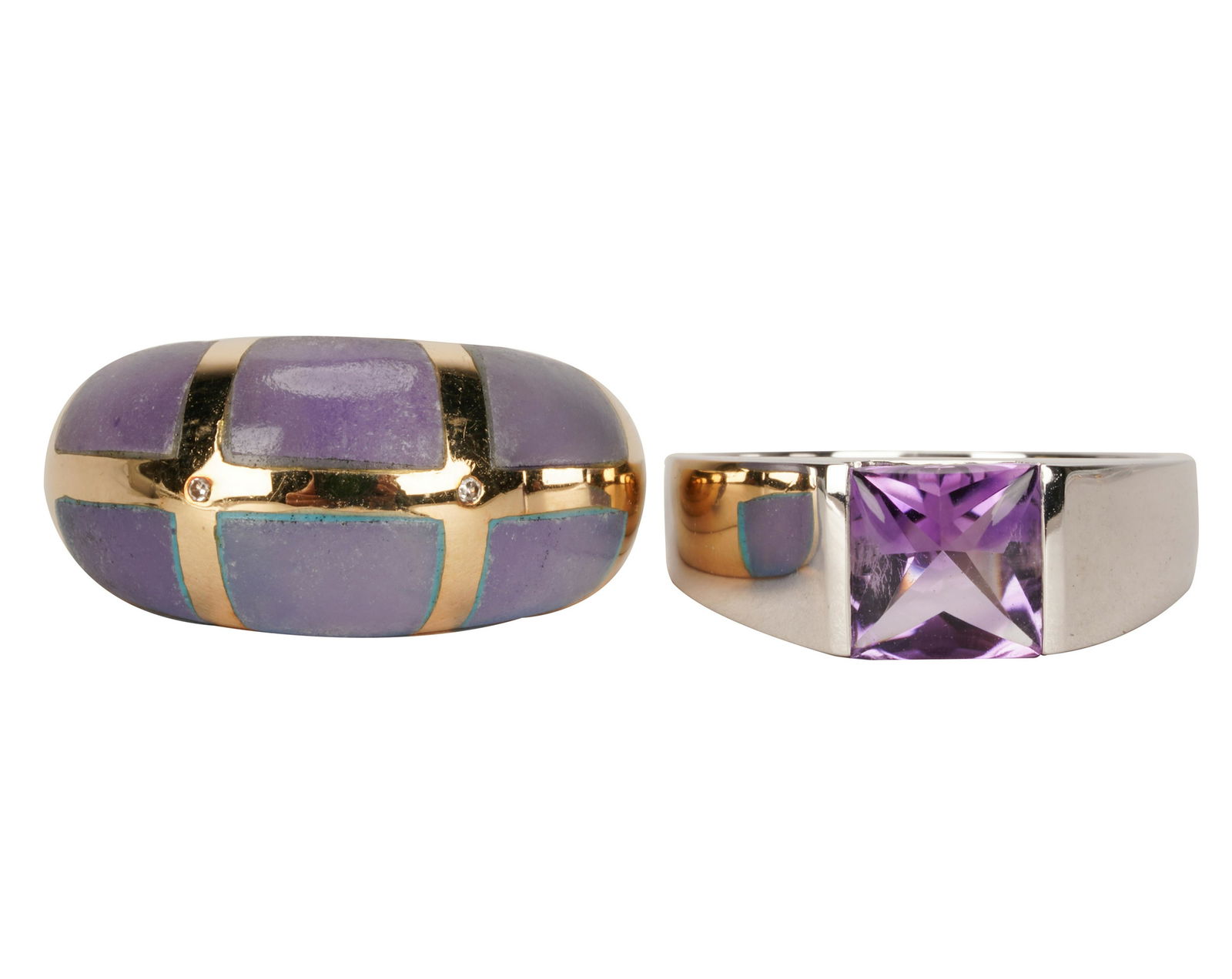 Two solitaire rings. 585 yellow gold with an aquamarine and a purple coloured stone.Auktionshaus Schreiber4.3(13)€3907 days Left