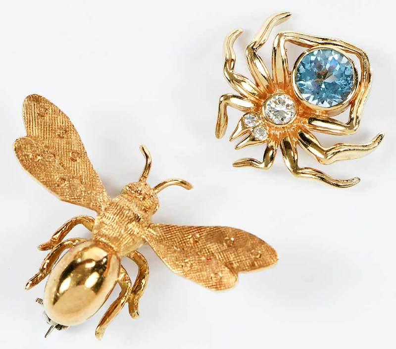 Two Gold Bug Brooches