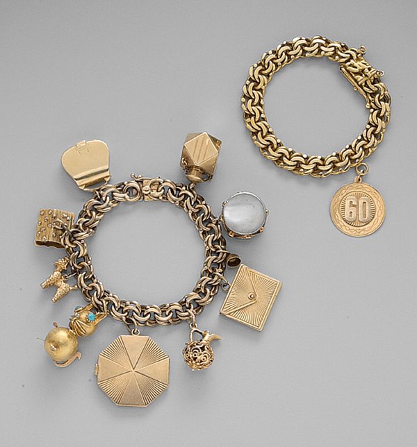 Two Gold Charm Bracelets Tot Gr Wt Approx