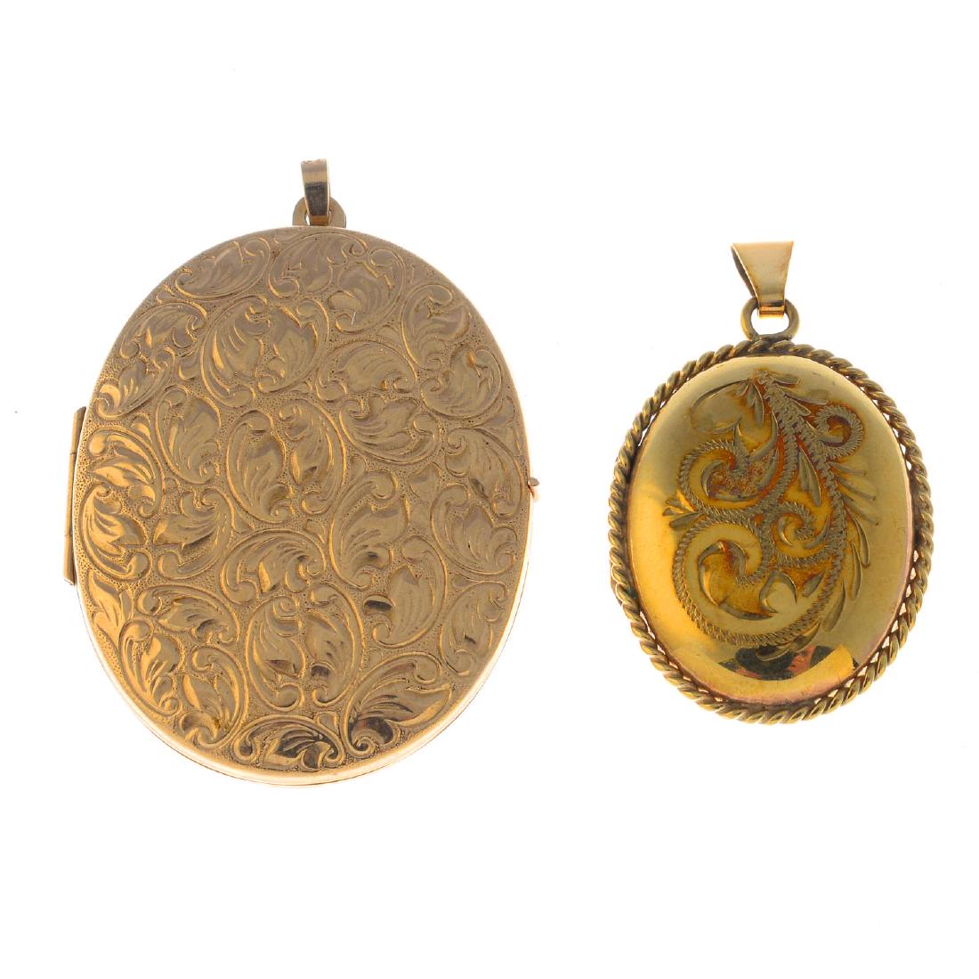 Two gold lockets. The first designed as a 9ct gold oval