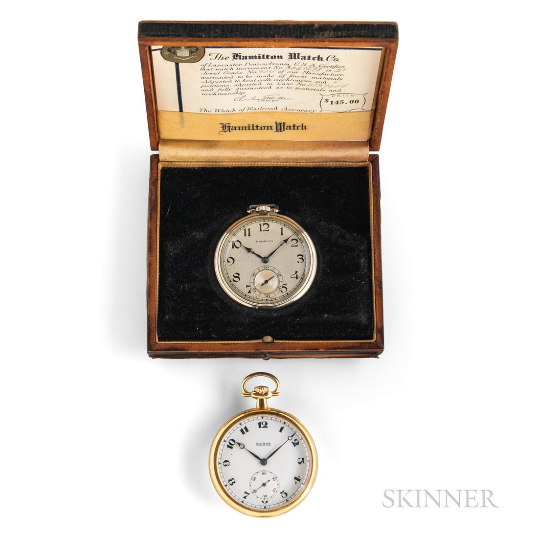 A lot of two gold pocket watch (2) Various datesLot of 5 Gold Plated Pocket Watches, Waltham, Zenith, A.C. Routier Quebec330 Lots AwayE. HOWARD 17-JEWEL MODEL 1912 POCKET WATCHES, LOT OF TWOMar 04, 2026HAMILTON 21-JEWEL GRADE 992 MODEL 2 POCKET WATCHES, LOT OF TWOMar 04, 2026HAMILTON 17-JEWEL MODEL 1 AND 2 POCKET WATCHES, LOT OF FIVEMar 04, 2026A lot of two 9K gold pocket watches (2) Various datesA lot of three gold open face pocket watch Various datesHAMILTON 17-JEWEL MODEL 1 AND 2 POCKET WATCHES, LOT OF FIVEMar 04, 2026E. HOWARD 17- AND 19-JEWEL POCKET WATCHES AND PRESENTATION BOX, LOT OF THREEMar 04, 2026A lot of three silver pocket watches including a quarter repeater (3) Various datesHAMILTON 17- AND 23-JEWEL MODEL 1 POCKET WATCHES AND PRESENTATION BOX, LOT OF FOURMar 04, 2026A lot of gold pocket watch with two gold plated pocket watches (3) Various datesHAMPDEN 16- AND 17-JEWEL MODEL 3, 4, AND 5 POCKET WATCHES, LOT OF FOURMar 04, 2026An 18K gold keyless wind open face pocket watch Circa 1900An 18K gold keyless wind open face pocket watch London Import mark for 1932An 18K gold key wind open face pocket watch London Hallmark for 1887