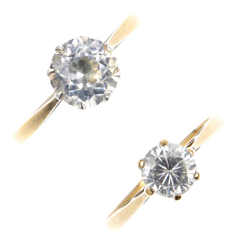 Two gold paste single-stone rings.
