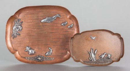TWO GORHAM COPPER AND SILVER TRAYS Gorham Manuf