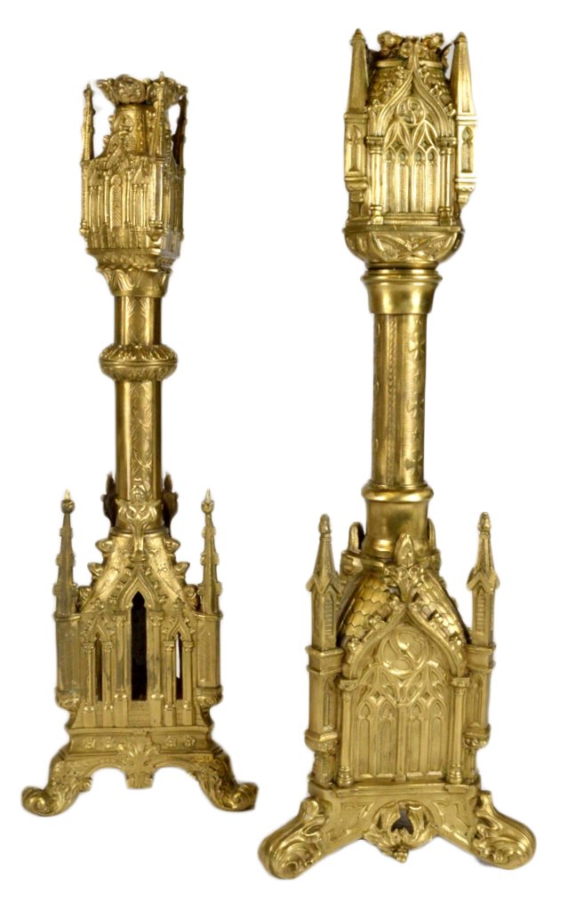 TWO GOTHIC STYLE CATHEDRAL CANDLESTICKS