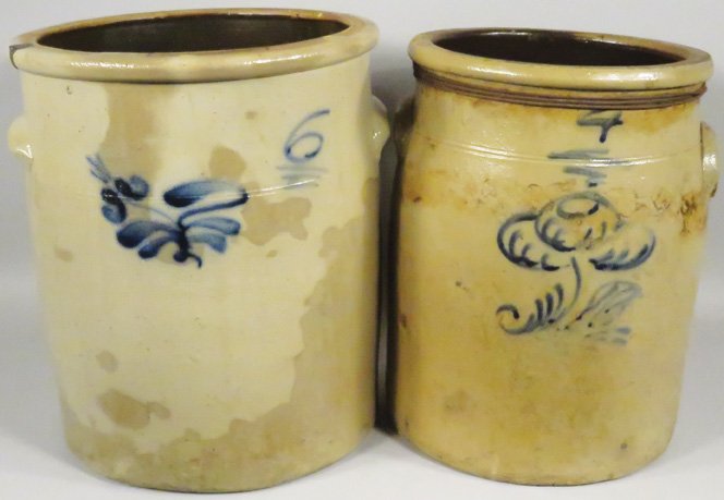 Two Gray Stoneware Crocks