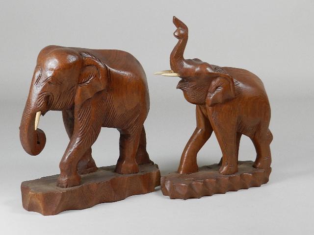 Two Hand Carved Elephants
