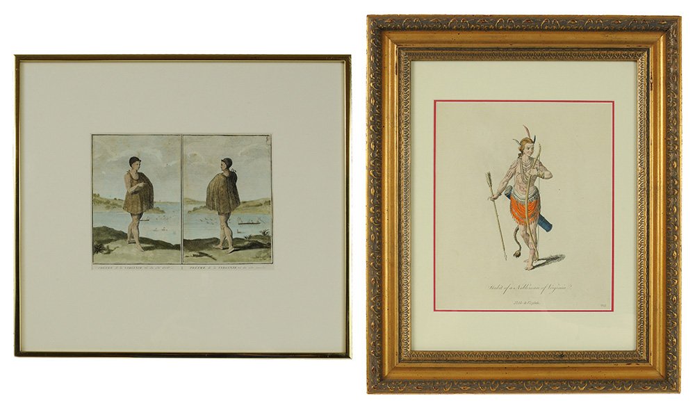 Two hand-colored engravings of Native