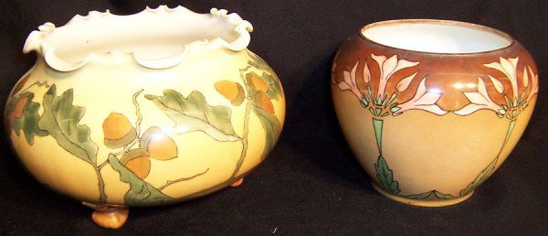 Two hand painted small jardinieres