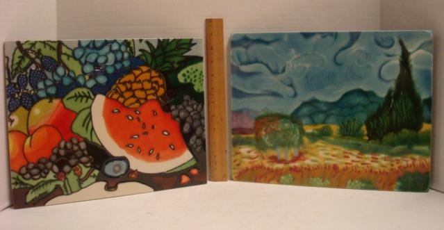 Two Handpainted Ceramic Tile Plaques: