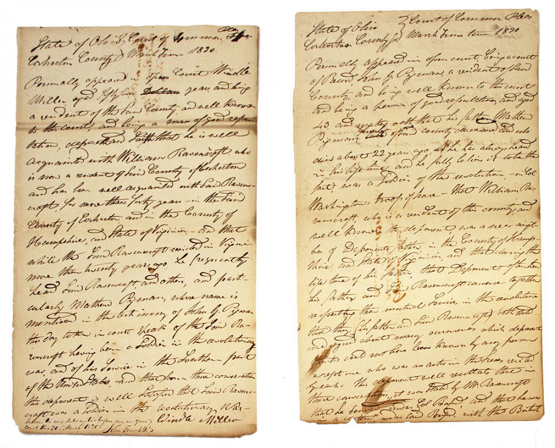 TWO HANDWRITTEN REVOLUTIONARY WAR DEPOSITIONS